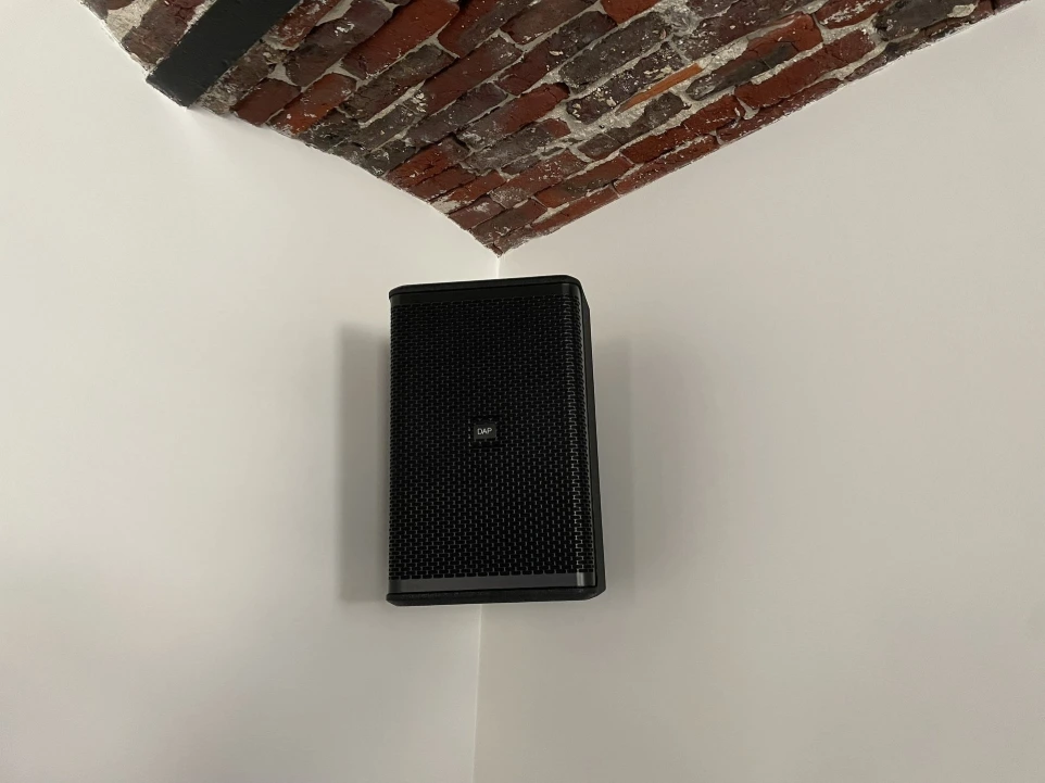 We maken hierbij opnieuw gebruik van een Sonos Port, gecombineerd met drie Crown-versterkers. Deze sturen de Audac plafondluidsprekers aan, aangevuld met zes 10-inch topkasten die strategisch verdeeld zijn over de verschillende ruimtes voor een optimale geluidsdekking.